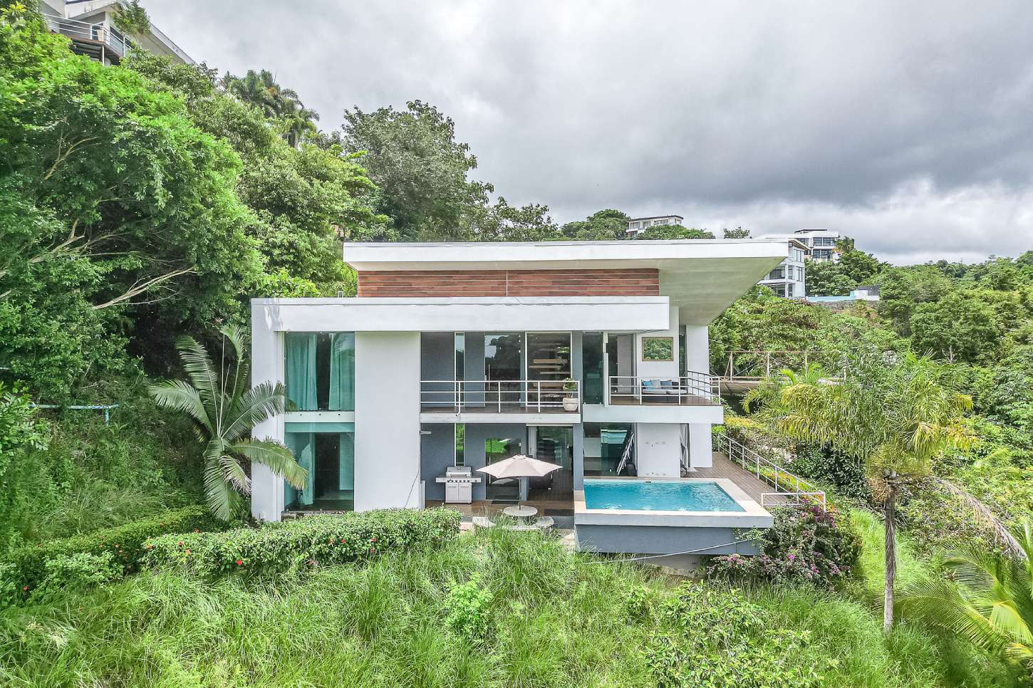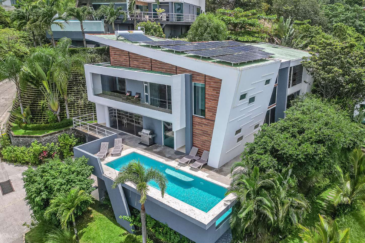 Our modern luxury Villa was designed by award winning local architects. With 5000 square feet of space, and top of the line amenities, including a pool with breathtaking views of the Pacific Ocean you’ll have plenty of room to relax and unwind. All of the bedrooms have their own ensuite bathrooms as well as a poolside bathroom. The home was designed with walls of glass to allow you to take in the breathtaking views of the Jungle and Ocean while indoors. Each bedroom has it’s own TV with cable, air conditioning, and room darkening drapes and shades for maximum comfort. At the end of your day, relax and slip into the cool and soft luxury sheets and comforters that make up our beds. Organic luxury shampoos, body wash, and soft towels are in every bathroom along with we provide pool towels in every room for your use. Our kitchens are fully equipped whether you wish to cook a new local recipe you learned or your own personal favorites.
