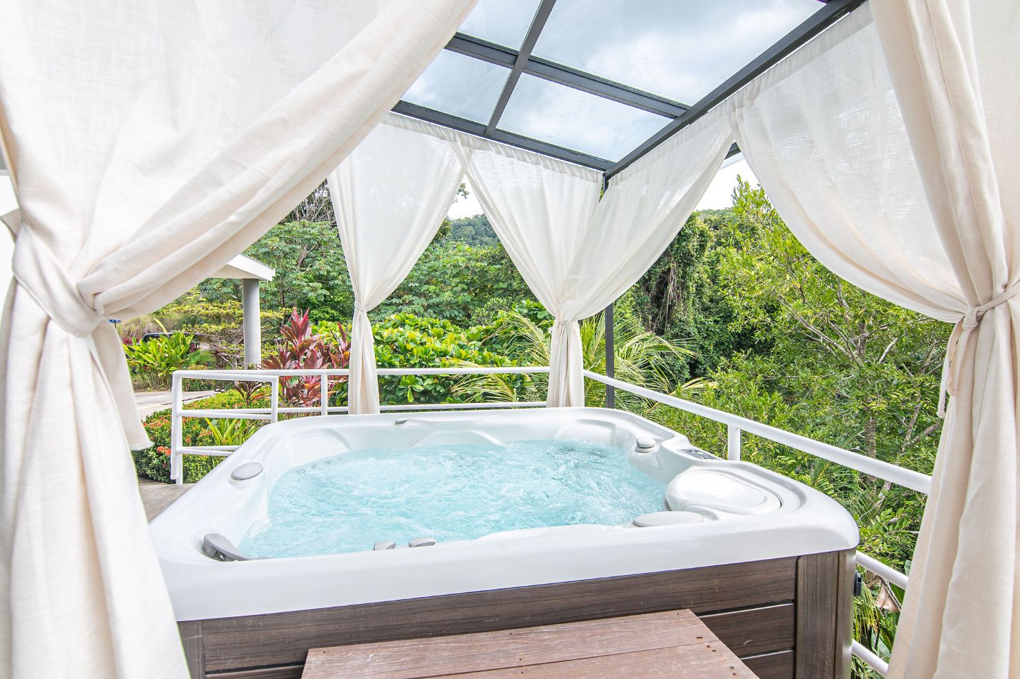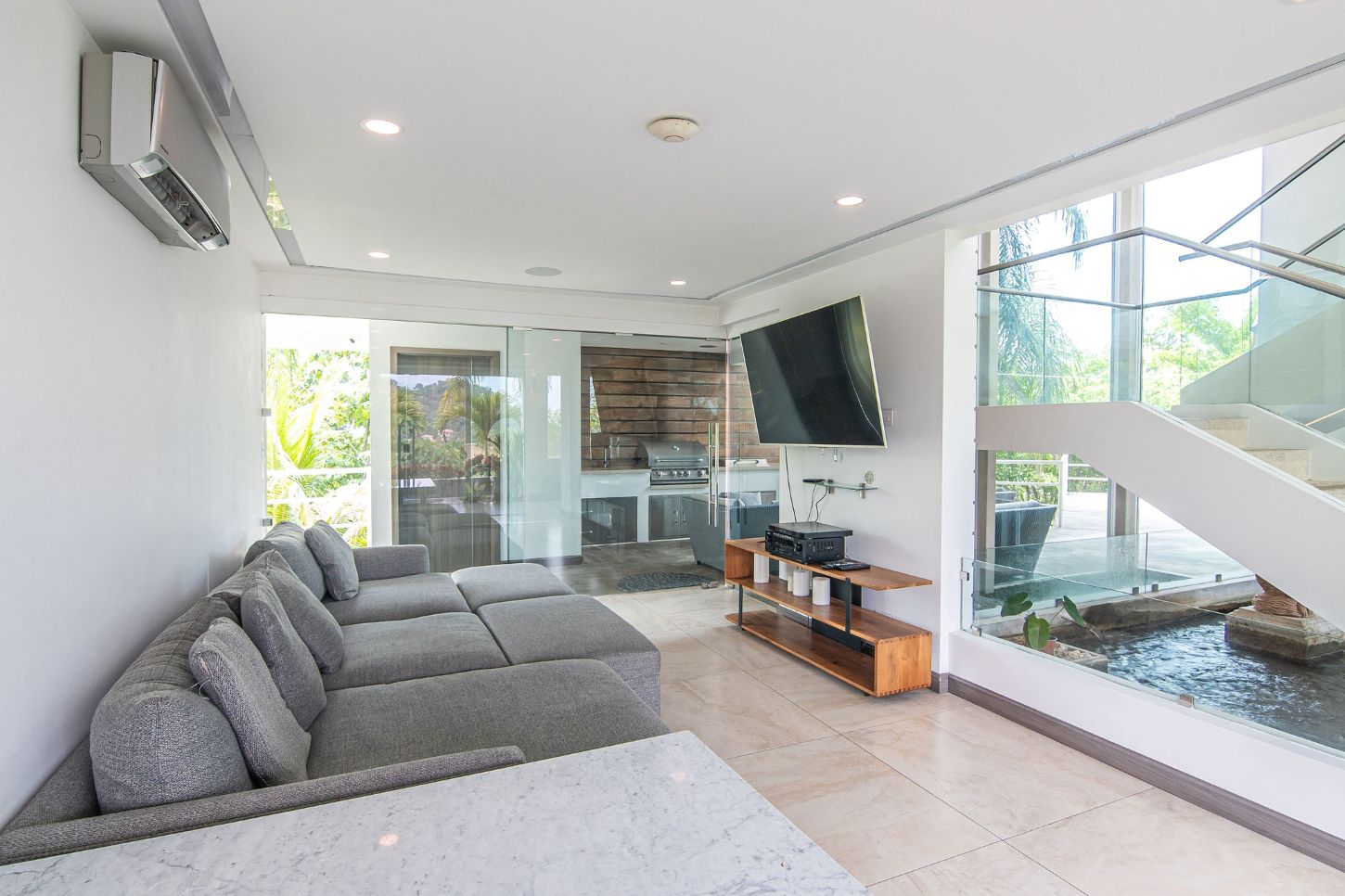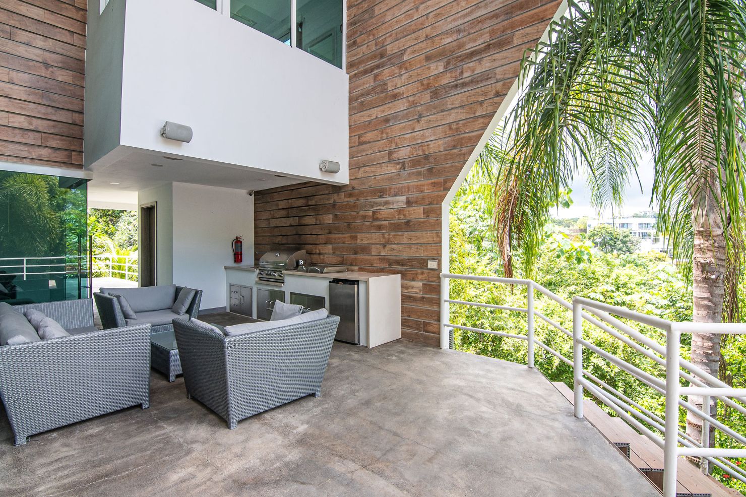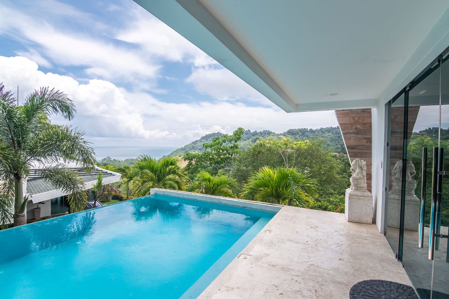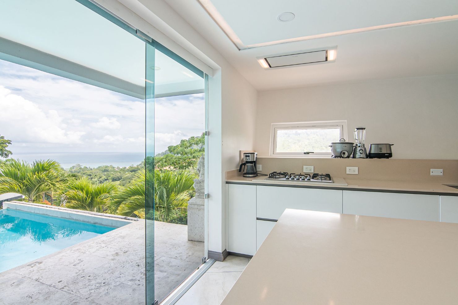 Our modern luxury Villa was designed by award winning local architects. With 5000 square feet of space, and top of the line amenities, including a pool with breathtaking views of the Pacific Ocean you’ll have plenty of room to relax and unwind. All of the bedrooms have their own ensuite bathrooms as well as a poolside bathroom. The home was designed with walls of glass to allow you to take in the breathtaking views of the Jungle and Ocean while indoors. Each bedroom has it’s own TV with cable, air conditioning, and room darkening drapes and shades for maximum comfort. At the end of your day, relax and slip into the cool and soft luxury sheets and comforters that make up our beds. Organic luxury shampoos, body wash, and soft towels are in every bathroom along with we provide pool towels in every room for your use. Our kitchens are fully equipped whether you wish to cook a new local recipe you learned or your own personal favorites. Work out in the state-of-the-art relax in the living room listening to water gently falling in the indoor water features, or gaze at the Koi fish in the living room pond.