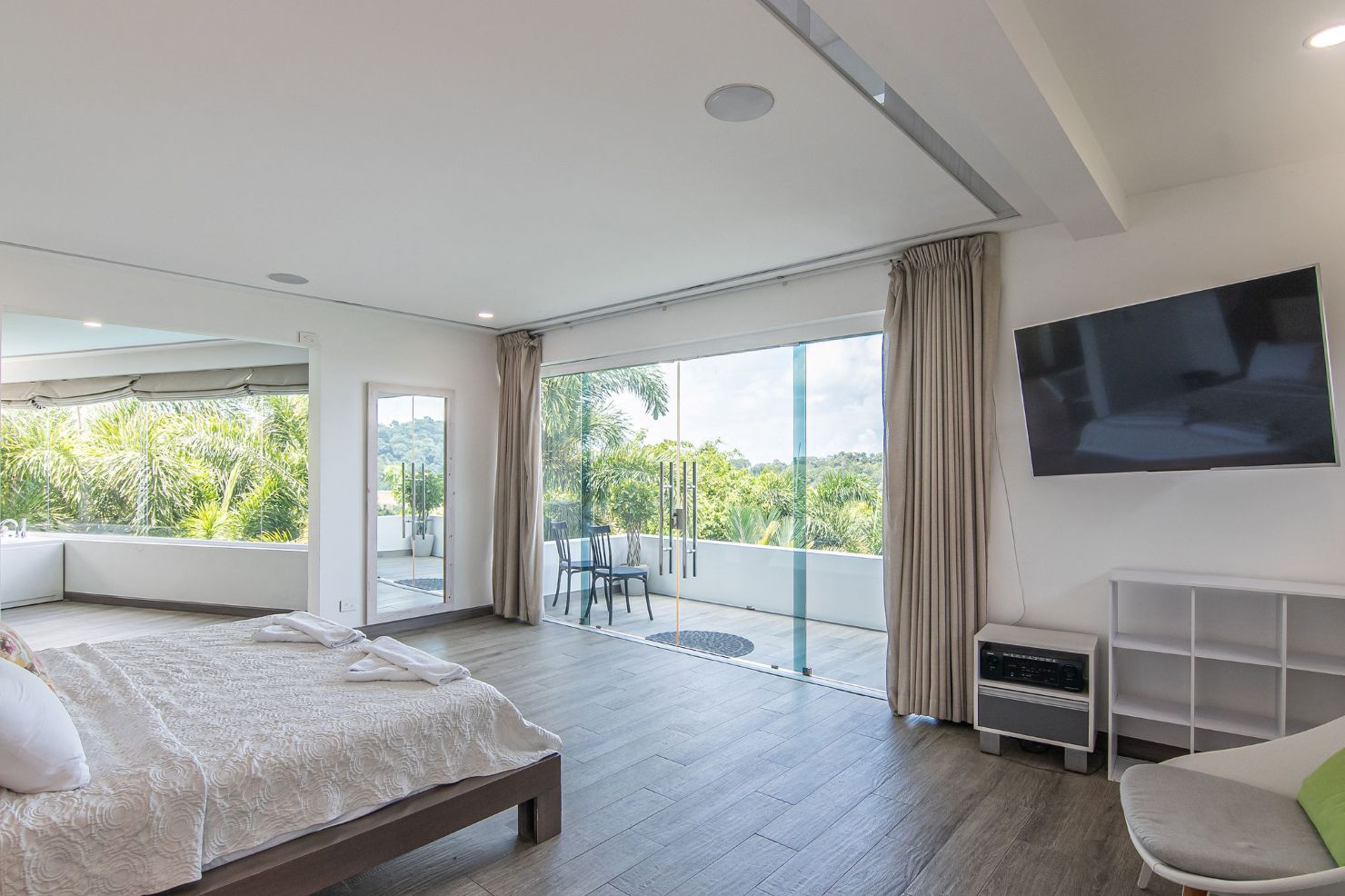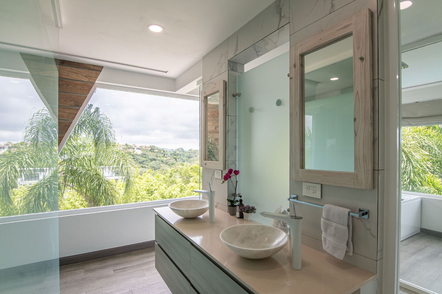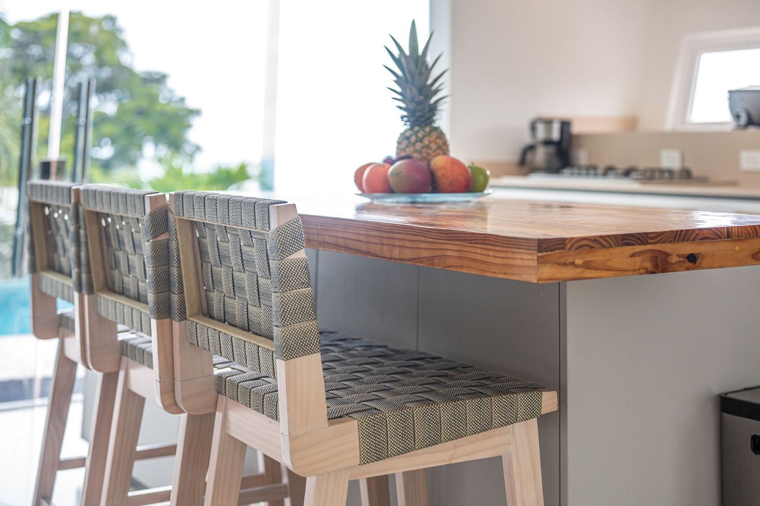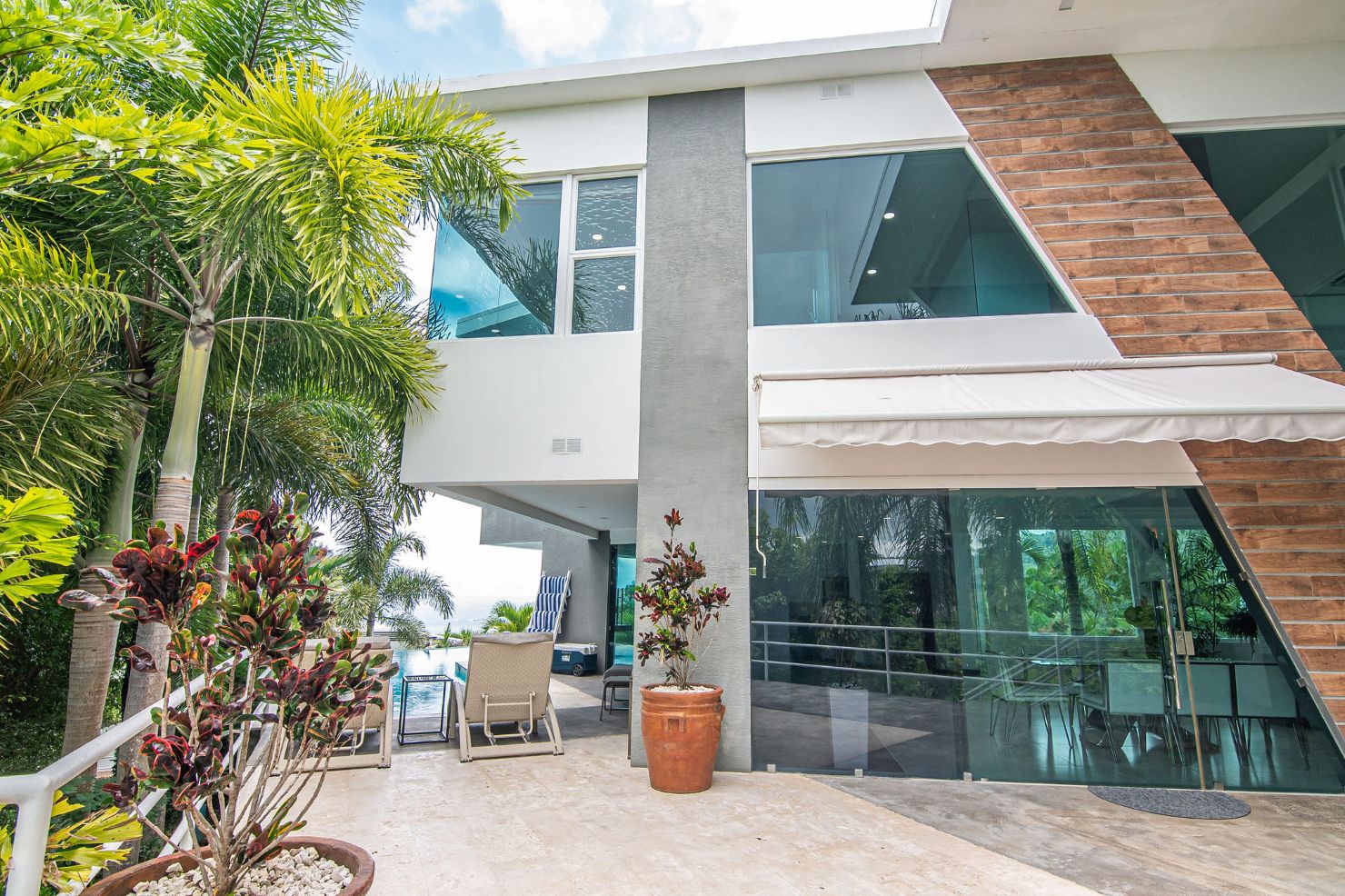 Our modern luxury Villa was designed by award winning local architects. With 5000 square feet of space, and top of the line amenities, including a pool with breathtaking views of the Pacific Ocean you’ll have plenty of room to relax and unwind. All of the bedrooms have their own ensuite bathrooms as well as a poolside bathroom. The home was designed with walls of glass to allow you to take in the breathtaking views of the Jungle and Ocean while indoors. Each bedroom has it’s own TV with cable, air conditioning, and room darkening drapes and shades for maximum comfort. At the end of your day, relax and slip into the cool and soft luxury sheets and comforters that make up our beds. Organic luxury shampoos, body wash, and soft towels are in every bathroom along with we provide pool towels in every room for your use. Our kitchens are fully equipped whether you wish to cook a new local recipe you learned or your own personal favorites. Work out in the state-of-the-art relax in the living room listening to water gently falling in the indoor water features, or gaze at the Koi fish in the living room pond.