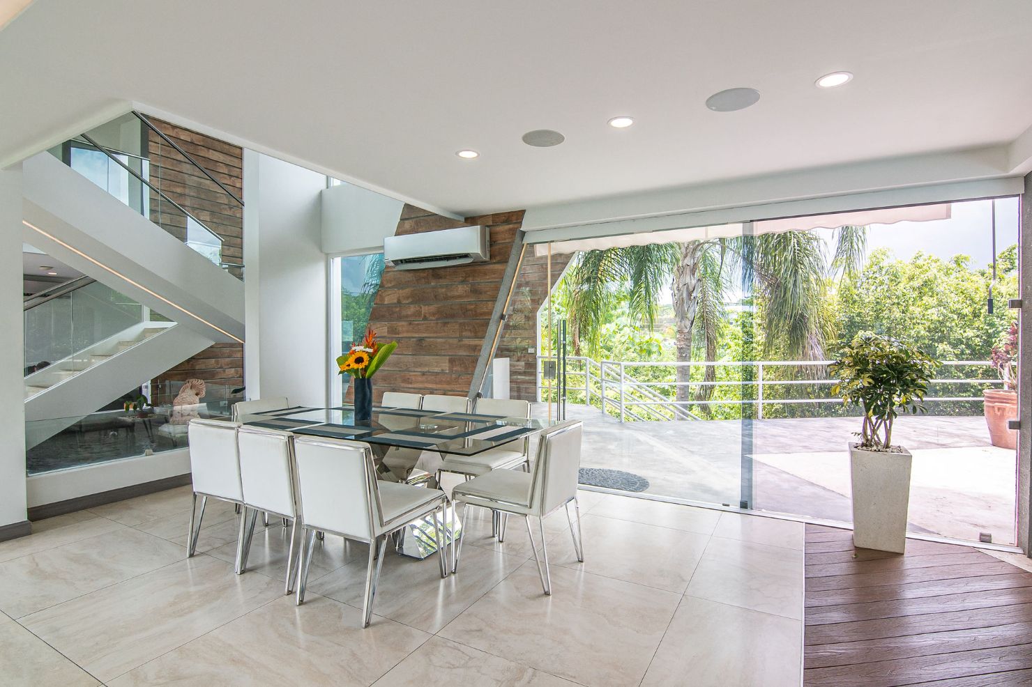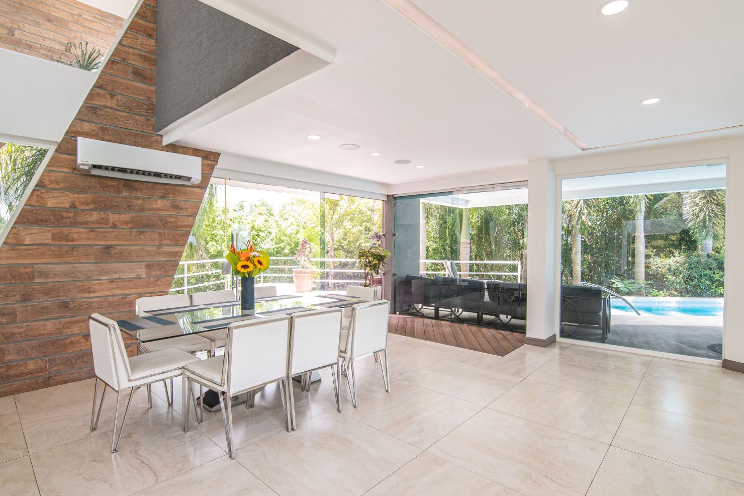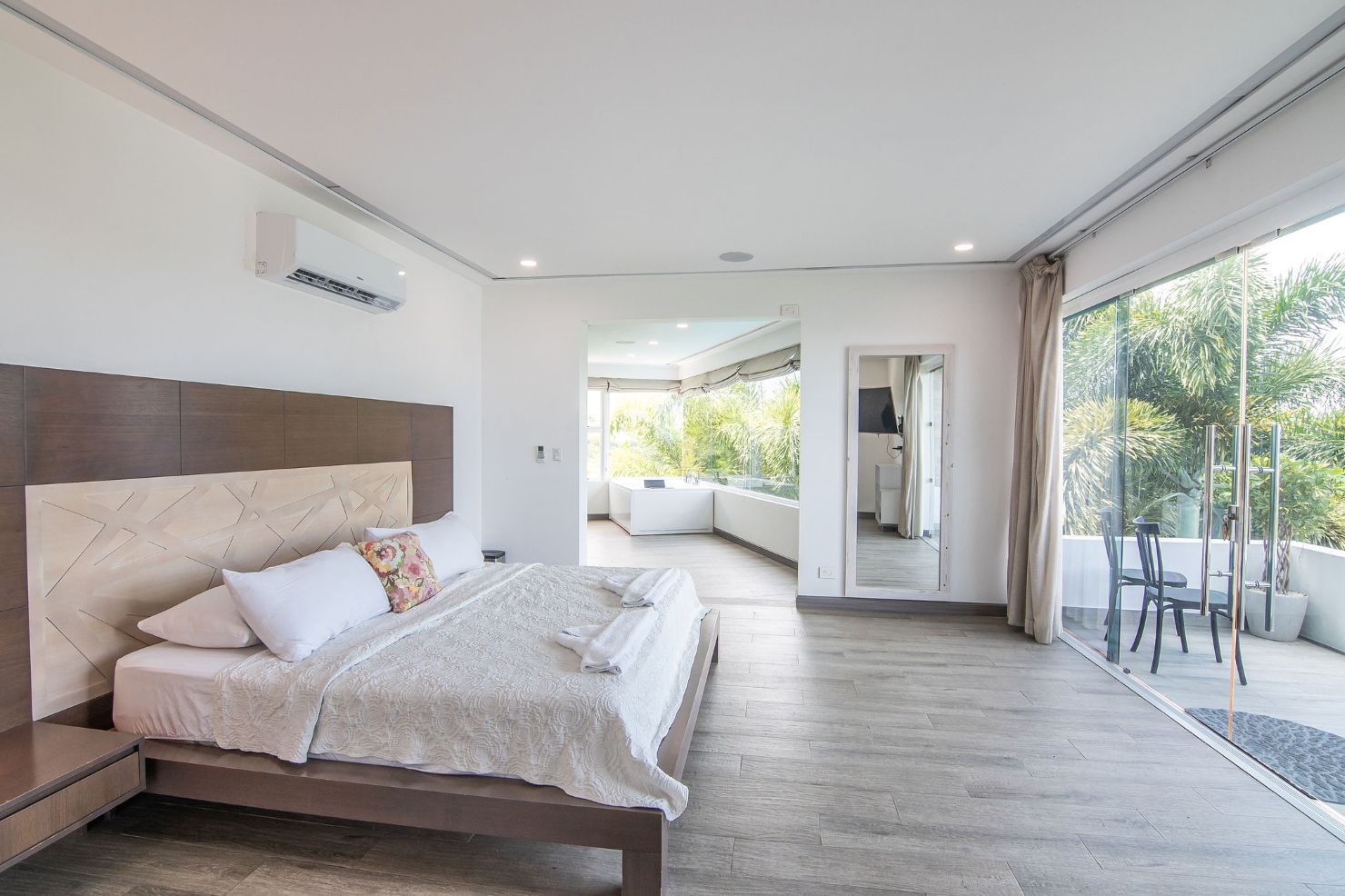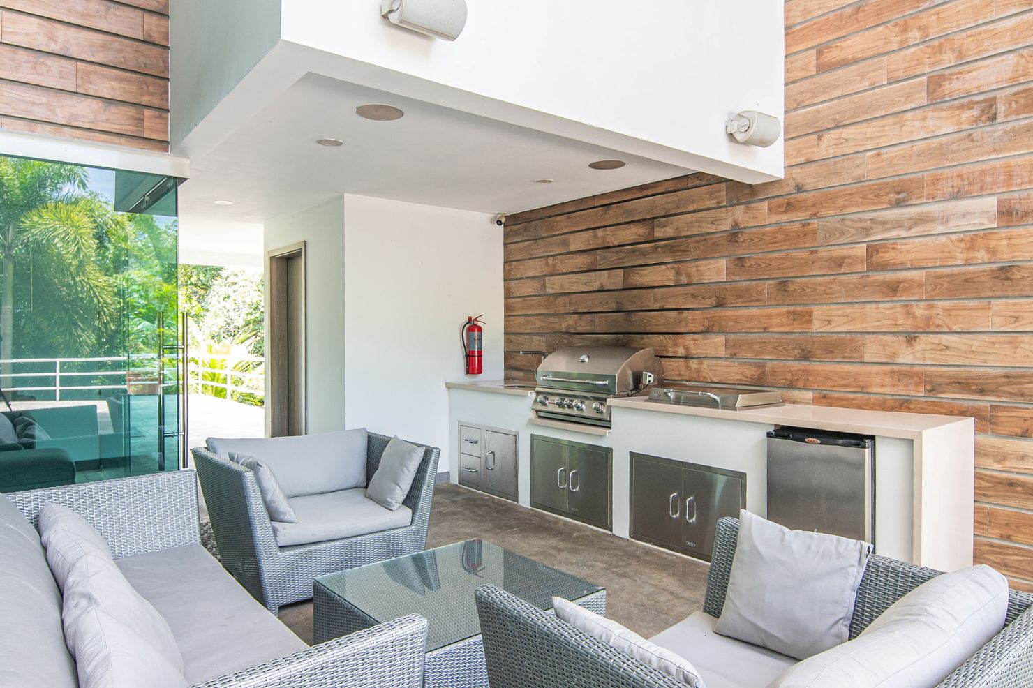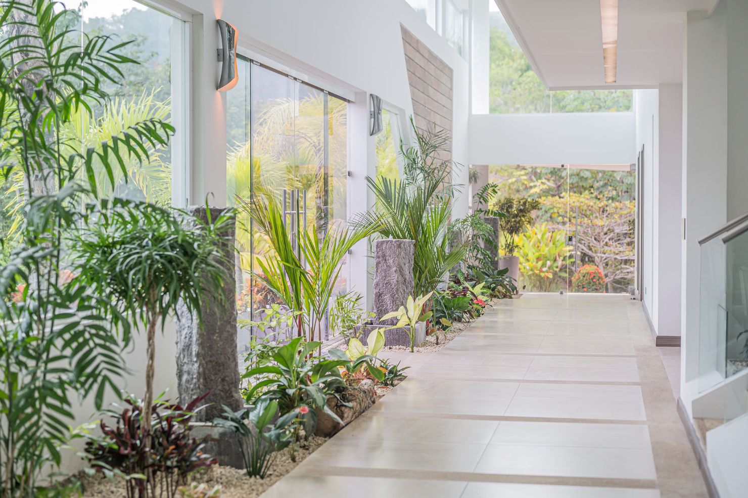 Our modern luxury Villa was designed by award winning local architects. With 5000 square feet of space, and top of the line amenities, including a pool with breathtaking views of the Pacific Ocean you’ll have plenty of room to relax and unwind. All of the bedrooms have their own ensuite bathrooms as well as a poolside bathroom. The home was designed with walls of glass to allow you to take in the breathtaking views of the Jungle and Ocean while indoors. Each bedroom has it’s own TV with cable, air conditioning, and room darkening drapes and shades for maximum comfort. At the end of your day, relax and slip into the cool and soft luxury sheets and comforters that make up our beds. Organic luxury shampoos, body wash, and soft towels are in every bathroom along with we provide pool towels in every room for your use. Our kitchens are fully equipped whether you wish to cook a new local recipe you learned or your own personal favorites. Work out in the state-of-the-art relax in the living room listening to water gently falling in the indoor water features, or gaze at the Koi fish in the living room pond.