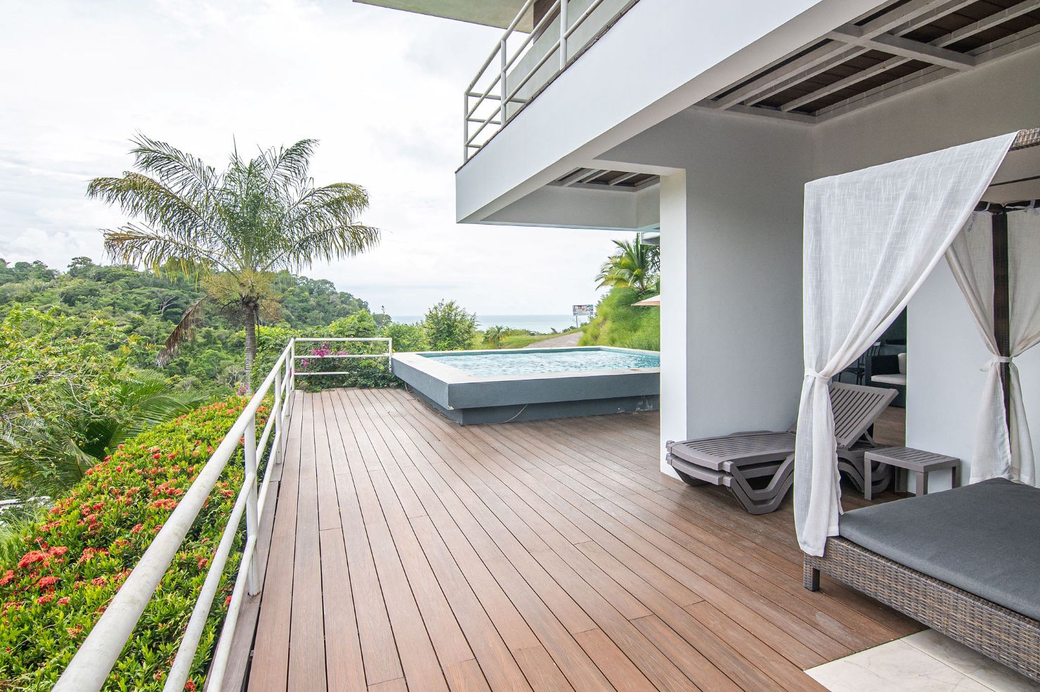 There is no better destination for a peaceful, rejuvenating escape than staying at one of our luxury Villas at The Reserve Costa Rica. This spacious 4 bedroom 5 bathroom villa, with 2 story floor plan, is perfect for families or large groups of up to 8 people. In this villa you have several different outdoor spaces to choose from, a beautiful private pool, ocean and jungle views, as well as a fully equipped kitchen and large dining table. Here you can relax beside the pool, with an amazing ocean view that has the most spectacular sunsets or you can take an adventure off into the jungle or a walk or horseback ride along the beach. If you’re lucky you might even see some of the monkey’s, toucans and other wildlife that inhabit the jungle on The Reserve. Our Villa is located in the heart of Playa Hermosa, a sleepy little surfing town. Here you can discover the easy going lifestyle that locals like to call, Pura Vida. Just 4.5 miles from the town of Jaco (pronounced hah-Ko) and 90 minutes from the city of San Jose, guests return year after year to relax and recharge in our luxury Villas. Think of it as your own personal retreat during your stay in Costa Rica.