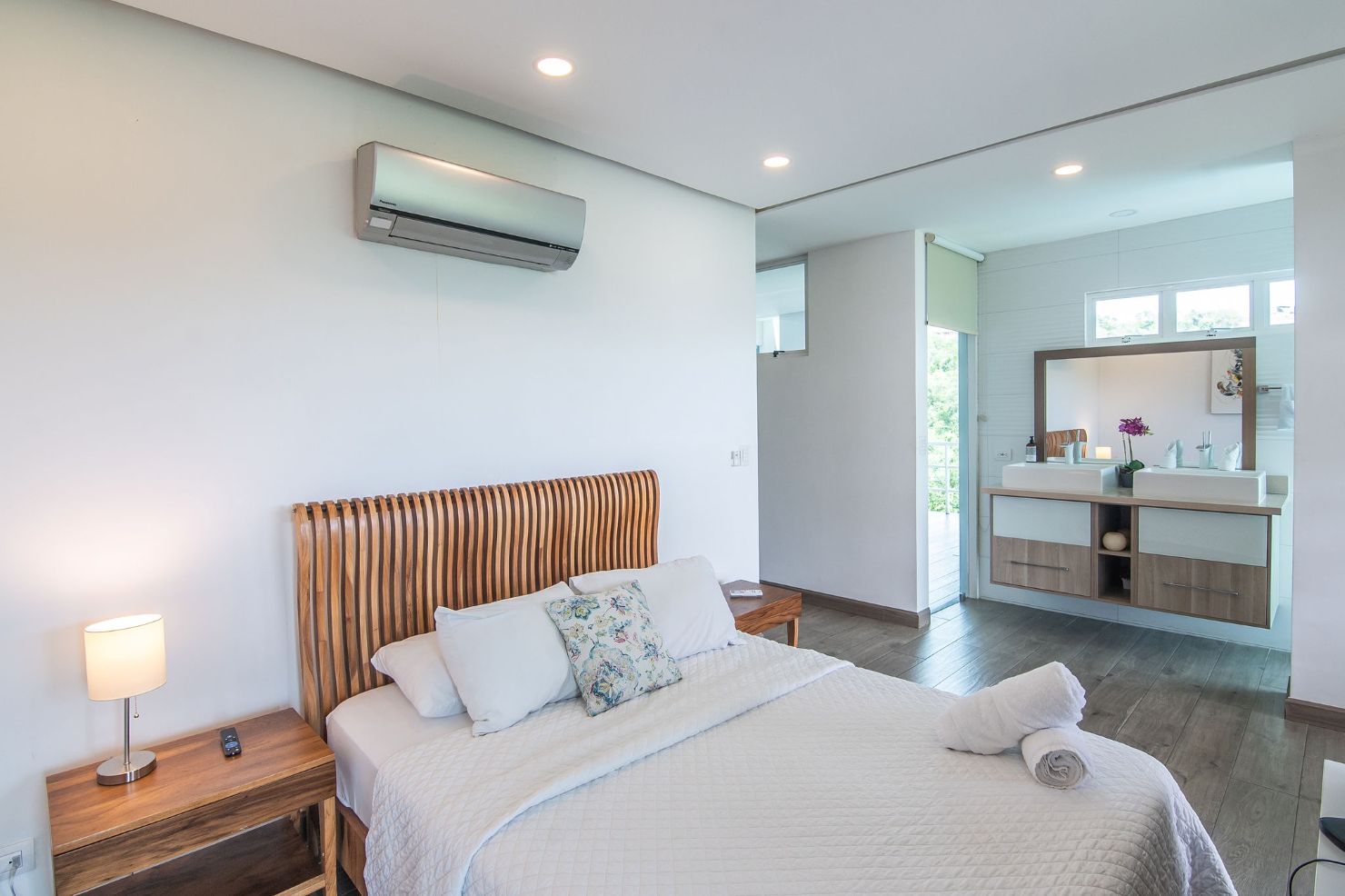 Our modern luxury Villa was designed by award winning local architects. With 5000 square feet of space, and top of the line amenities, including a pool with breathtaking views of the Pacific Ocean you’ll have plenty of room to relax and unwind. All of the bedrooms have their own ensuite bathrooms as well as a poolside bathroom. The home was designed with walls of glass to allow you to take in the breathtaking views of the Jungle and Ocean while indoors. Each bedroom has it’s own TV with cable, air conditioning, and room darkening drapes and shades for maximum comfort. At the end of your day, relax and slip into the cool and soft luxury sheets and comforters that make up our beds. Organic luxury shampoos, body wash, and soft towels are in every bathroom along with we provide pool towels in every room for your use. Our kitchens are fully equipped whether you wish to cook a new local recipe you learned or your own personal favorites.